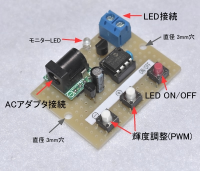 | LED回路工作部屋 (トップ) > LED輝度調節回路 (DC12V) | 【初回:2019/10/23】【更新:2019/10/23】 |