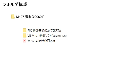 内 容 "Nゲージをパソコンで操作するセット [M-07]" の 制御基板製作図、各プログラムです。 特に詳細な説明等は付属しませんが、参考にしたい場合は活用して下さい。 内容は下記3点で、フォルダ構成図のように資料が入っています。この一式を指定のアドレスからダウンロード提供します。 ・制御基板 製作図 (M-07 基板製作図) ・制御基板のプログラム (PIC 制御基板(D2) プログラム) ・VB2008で作製した制御ソフトのプログラムデータ (VB M-07 制御ソフト(Ver.191125)) ![]() 詳 細 ・制御基板 製作図 (M-07 基板製作図) PDFファイル 5ページ 構成です。 基板製作図が回路図を兼ねているので、「回路図」とういものはありません。「回路図」は特に必要性がなかったので、直接、基板の図の上に、適切な部品の配置と配線考えながら作っています。 PIC16F883 (マイコン) に、下記に示す各部を接続して制御する構成になっています。 ・2SC4811 トランジスタ (車両に流す電流をPWM制御) ・2SC4815 トランジスタ (電圧を反転(前進・後退)させるリレーを動作させる) ・LV8548MC モータードライバ (ポイントを動作させる) ・センサー入力(1)(2) (車両検知センサーの検知状況の取得) ・USBシリアル通信モジュール (パソコンと Tx Rx による通信) ・各モニターLED (LEDの制御) ![]() ![]() ![]() ![]() ![]() ・制御基板のプログラム (PIC 制御基板(D2) プログラム) PIC16F883 (マイコン) の ASMファイル および HEXファイル です。 制御基板で使用しているプログラムになります。 ![]() ・VB2008で作製した制御ソフトのプログラムデータ (VB M-07 制御ソフト(Ver.191125)) Nゲージの操作を行うソフトのプログラムです。 VB2008 または VB2008以降 の VB で開くと思います。 ![]() ![]() |